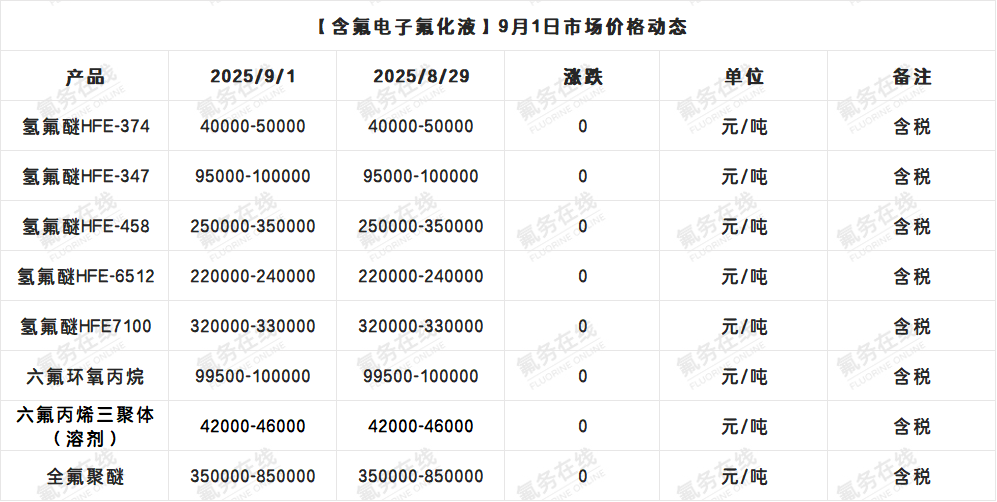 【含氟电子氟化液】9月1日市场价格动态