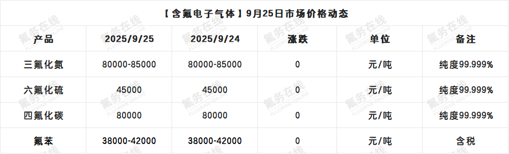 【含氟电子气体】9月25日市场价格动态
