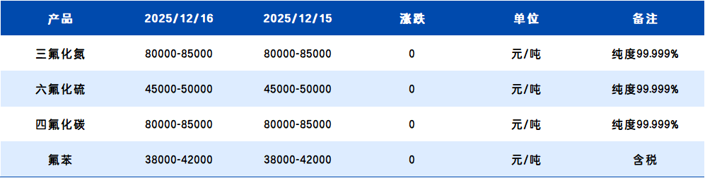 【含氟电子气体】12月16日市场价格动态