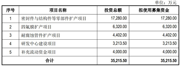 报告期内,主要采购PTFE等氟塑原料、PEEK类等原材料。重要供应商包括山东东岳高分子材料有限公司、中昊晨光化工研究院有限公司等。据了解,肯特股份募集资金扣除发行费用后拟用于以下列项目: