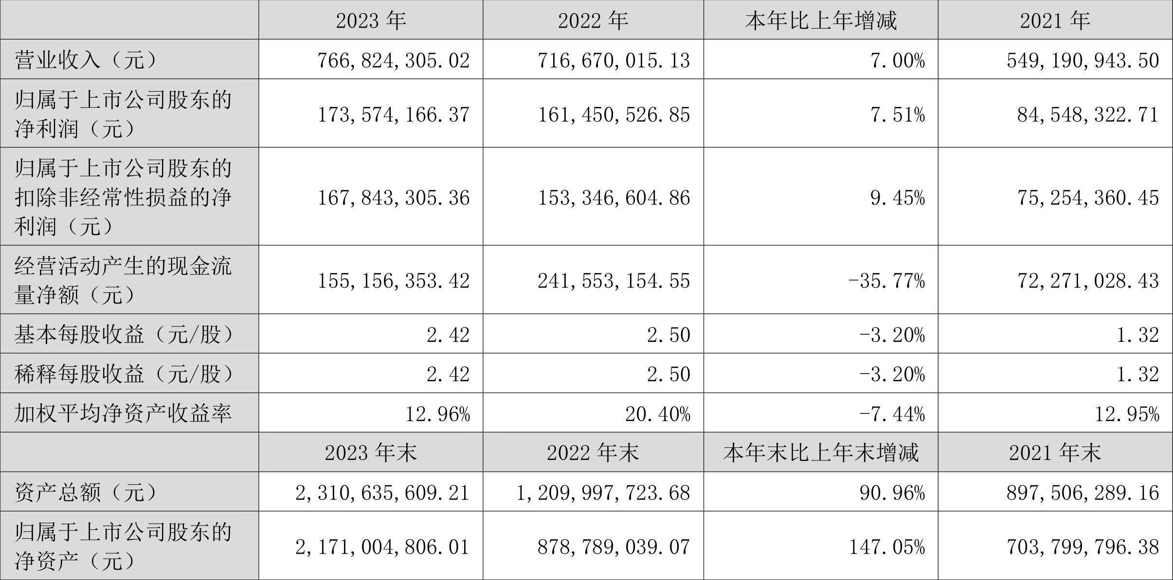 4月1日晚,金凯生科披露了创业板上市后的首份年报,数据显示,2023年公司实现营业收入7.67亿元,同比增长7.00%;实现归属于上市公司股东的净利润1.74亿元,同比增长7.51%。过去一年,金凯生科营业收入、净利润稳步增长,研发投入不断增大,同时也在构建服务能力方面迈出了坚实的步伐。