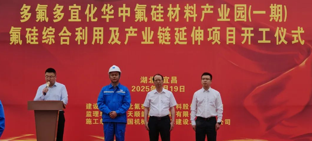作为多氟多·宜化华中氟硅产业园的核心项目,氟硅宜成项目由多氟多与湖北宜化两大行业龙头强强联手,汇聚技术、资源与市场优势,开创“1+1>2”的共赢格局。一期项目总投资5亿元,依托宜昌磷化工产业集群的氟、硅伴生资源,沿“氟硅酸—氢氟酸—氟精细化学品—氟电子化学品”的增值路径,投资建设年产2万吨电子级氢氟酸、3万吨无水氟化铝,同步规划2万吨六氟磷酸锂、高纯四氟化硅等高端产品线,将磷肥副产氟资源转化为“黄金赛道”,打造全国氟资源循环利用的示范标杆!