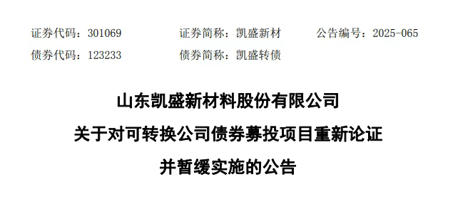 12月10日,凯盛新材发布公告,决定暂缓实施公开发行可转换公司债券的募投项目——“10000吨/年锂电池用新型锂盐项目”。该项目原计划投入募集资金5.5亿元,建设周期2年。