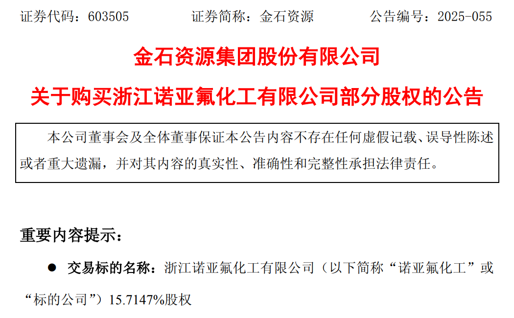 据公告,本次投资是依托金石资源公司上游萤石资源及基础氟化工产品的核心优势,向高增长潜力的精细氟化工赛道进行的战略性延伸,符合“资源+技术”两翼驱动战略及新质氟化工垂直一体化布局方向,有利于产业链协同。
