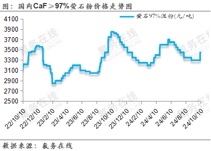 2022年-2024年国内CaF≥97%萤石粉价格走势图
