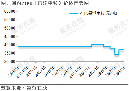 2023年-2025年国内PTFE(悬浮中粒)价格走势图