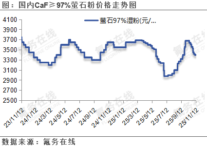 2023年-2025年国内CaF≥97%萤石粉价格走势图