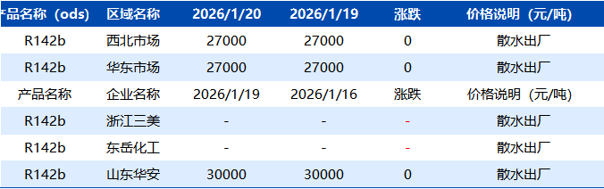 【R142b】1月20日市场价格一览表