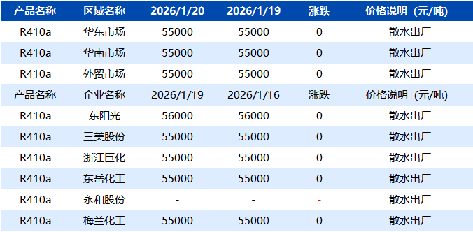 【R410a】1月20日市场价格一览表