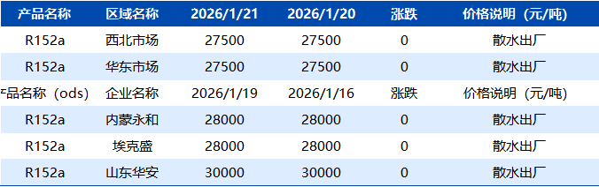 【R152a】1月21日市场价格一览表