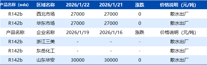 【R142b】1月22日市场价格一览表