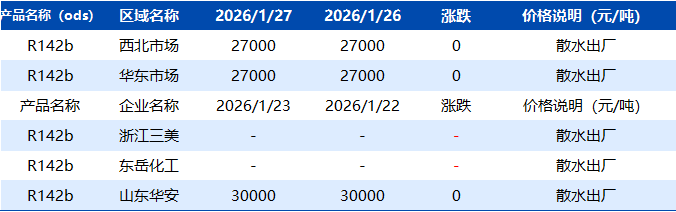 【R142b】1月27日市场价格一览表