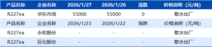 【R227ea】1月27日市场价格一览表