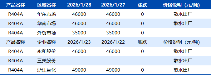【R404】1月28日市场价格一览表