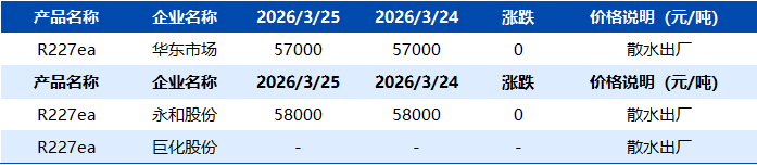 【R227ea】3月25日市场价格一览表
