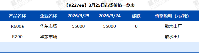 【R227ea】3月25日市场价格一览表