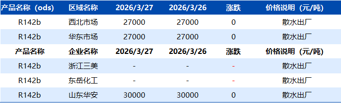 【R142b】3月27日市场价格一览表
