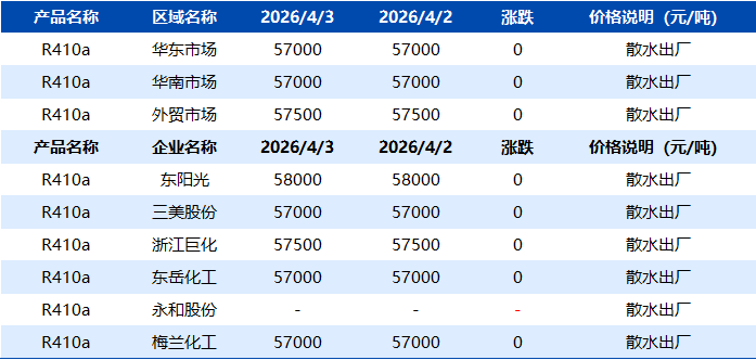 【R410a】4月3日市场价格一览表