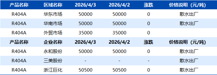 【R404】4月3日市场价格一览表