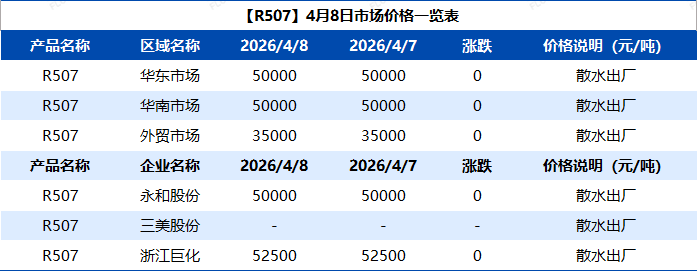 【R507】4月8日市场价格一览表
