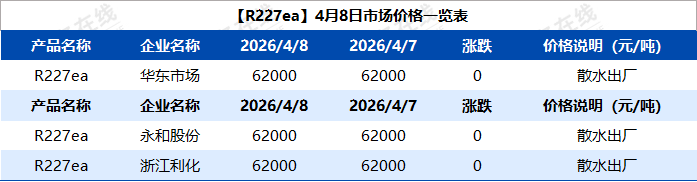 【R227ea】4月8日市场价格一览表