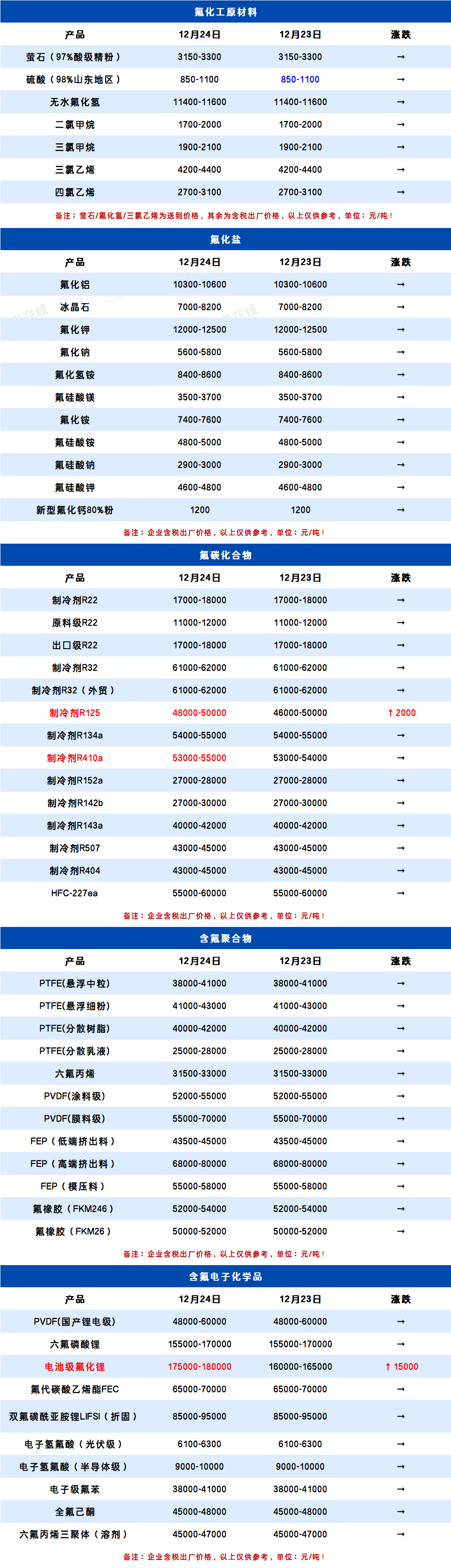 所属分类:全产业链价格表 阅读次数:273 发布时间:2025-12-24 内容来源:氟务在线