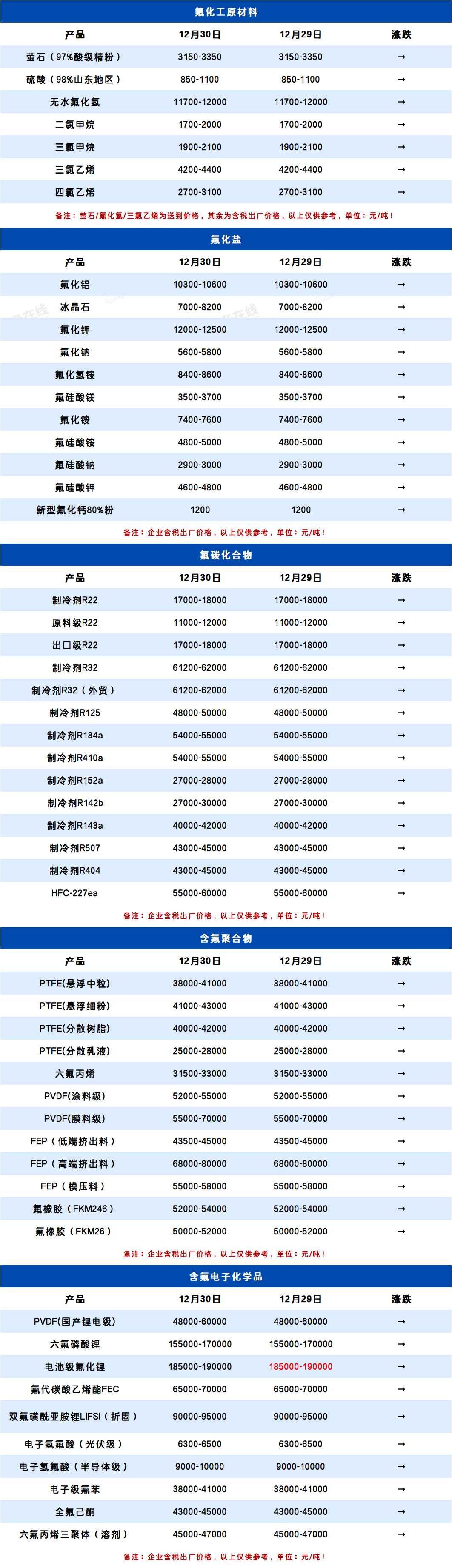 所属分类:全产业链价格表 阅读次数:301 发布时间:2025-12-30 内容来源:氟务在线
