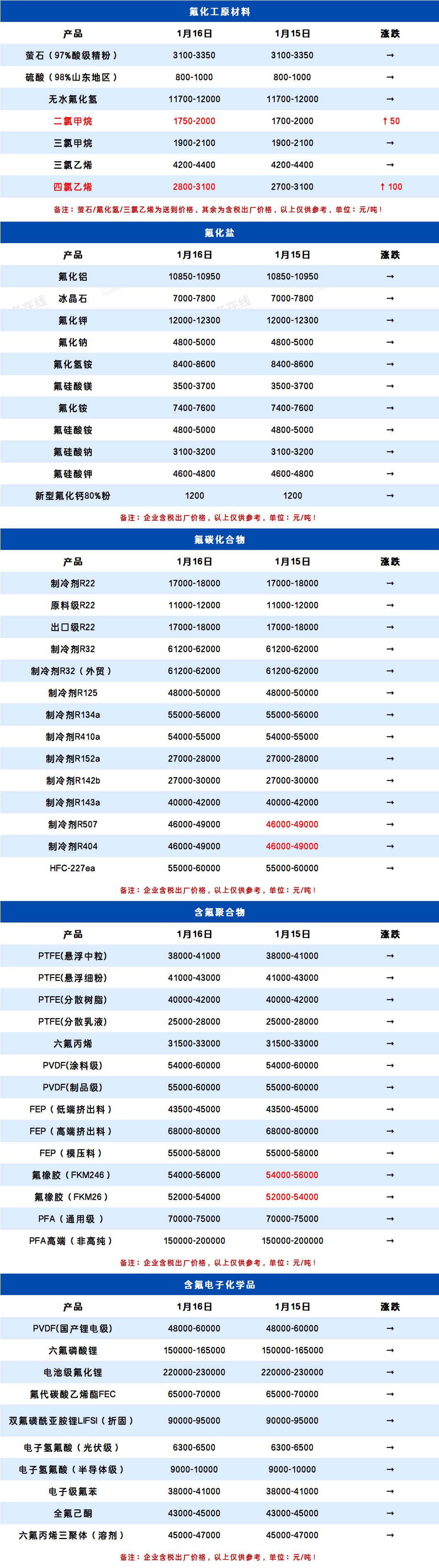 所属分类:全产业链价格表 阅读次数:255 发布时间:2026-01-16 内容来源:氟务在线