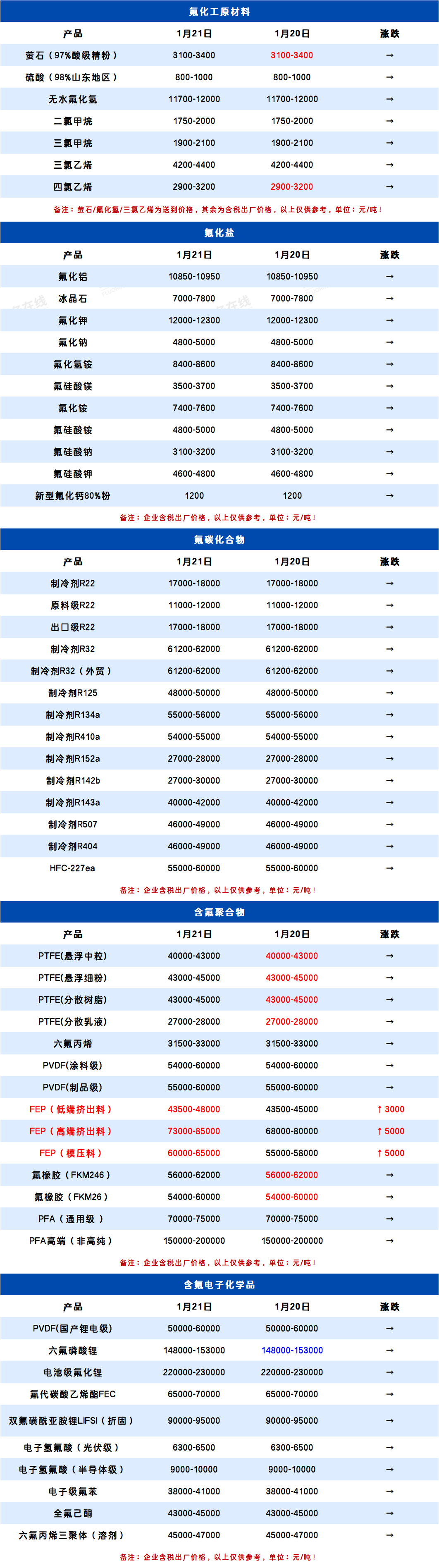 所属分类:全产业链价格表 阅读次数:301 发布时间:2026-01-21 内容来源:氟务在线