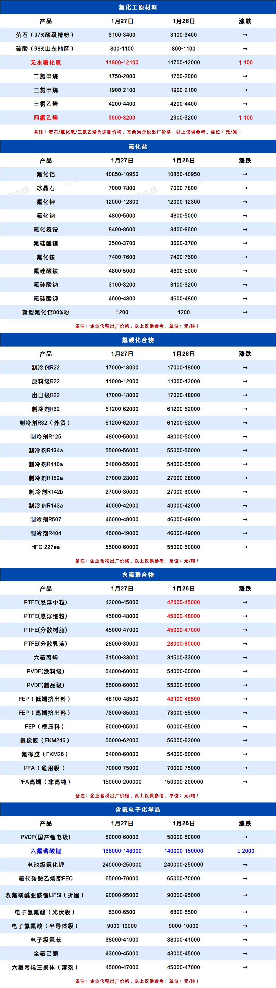 所属分类:全产业链价格表 阅读次数:213 发布时间:2026-01-27 内容来源:氟务在线