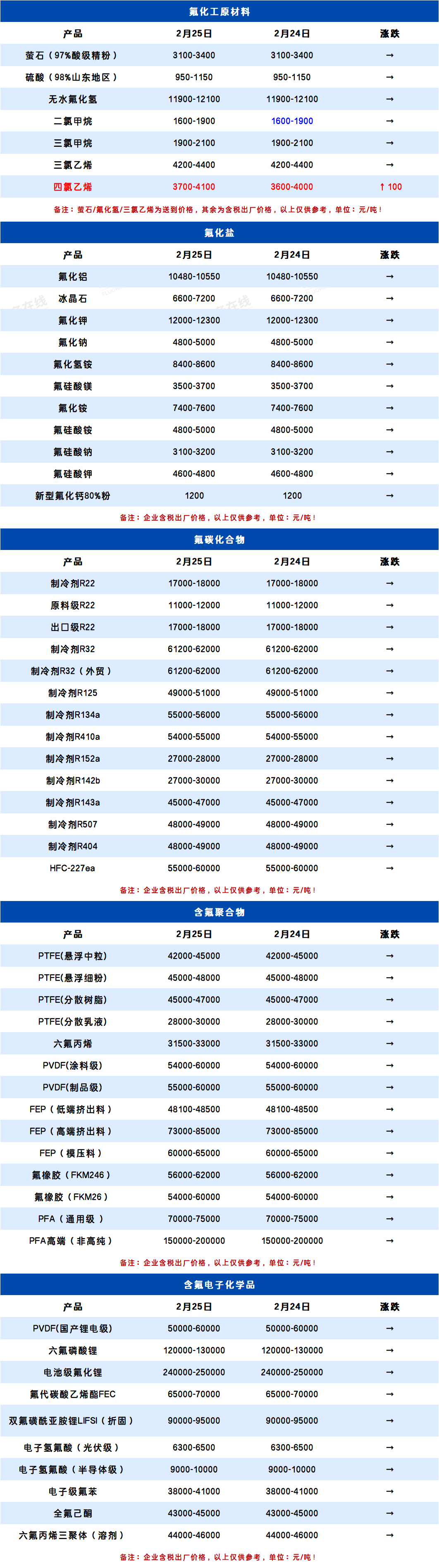 所属分类:全产业链价格表 阅读次数:105 发布时间:2026-02-25 内容来源:氟务在线