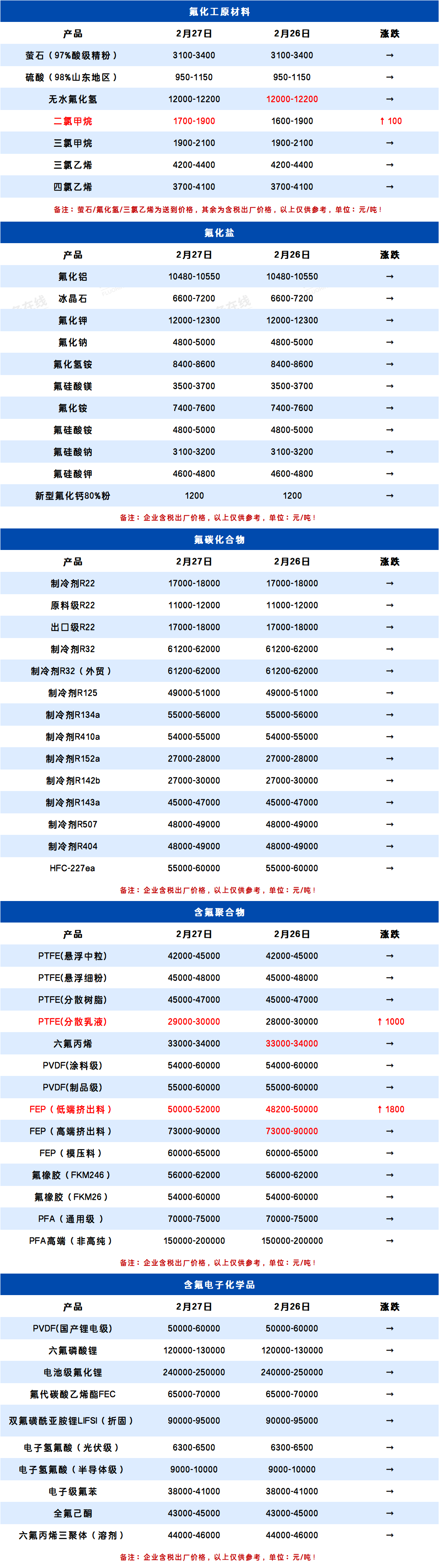 所属分类:全产业链价格表 阅读次数:95 发布时间:2026-02-27 内容来源:氟务在线