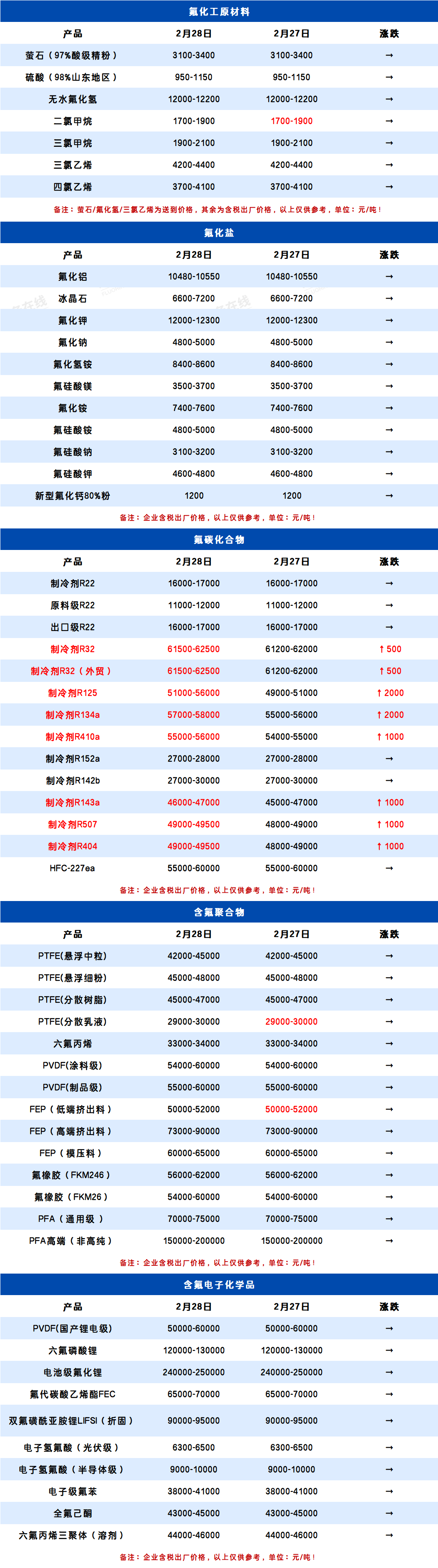 所属分类:全产业链价格表 阅读次数:133 发布时间:2026-02-28 内容来源:氟务在线