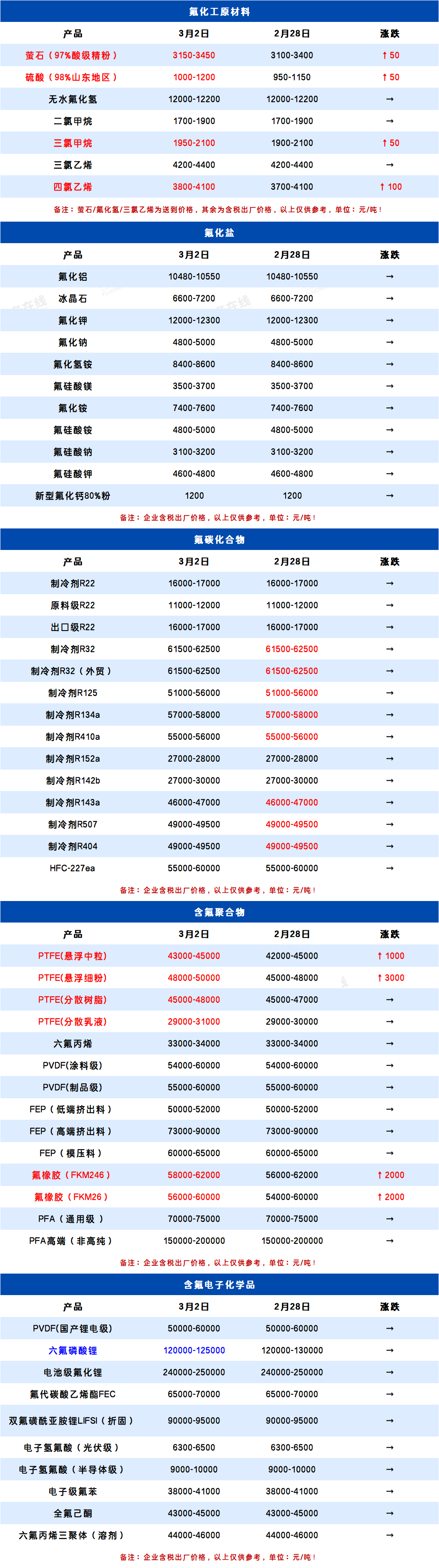 所属分类:全产业链价格表 阅读次数:73 发布时间:2026-03-02 内容来源:氟务在线