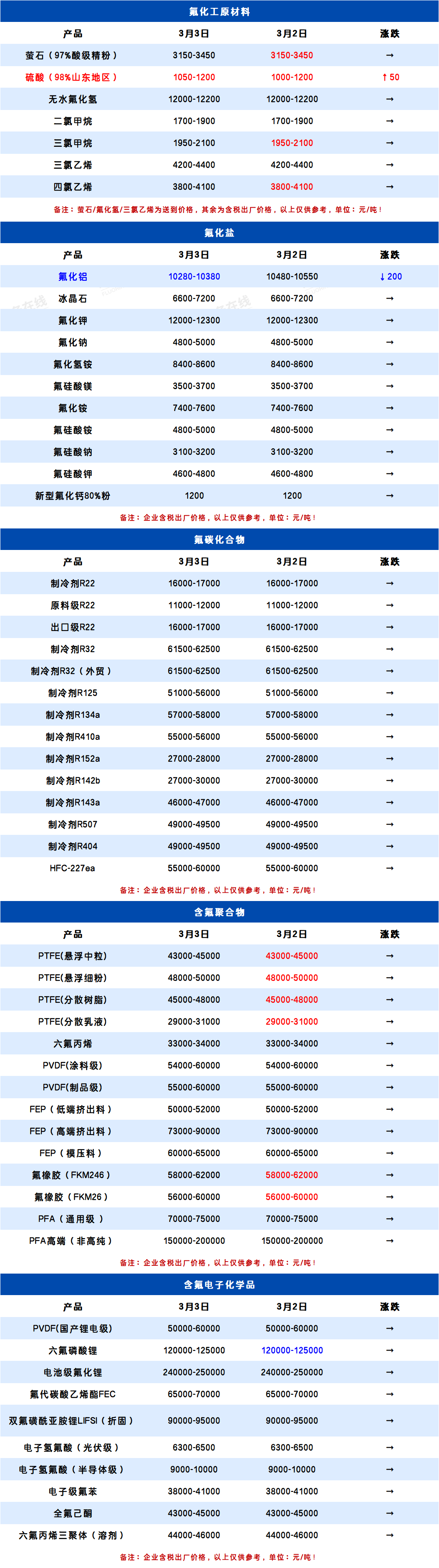 所属分类:全产业链价格表 阅读次数:33 发布时间:2026-03-03 内容来源:氟务在线