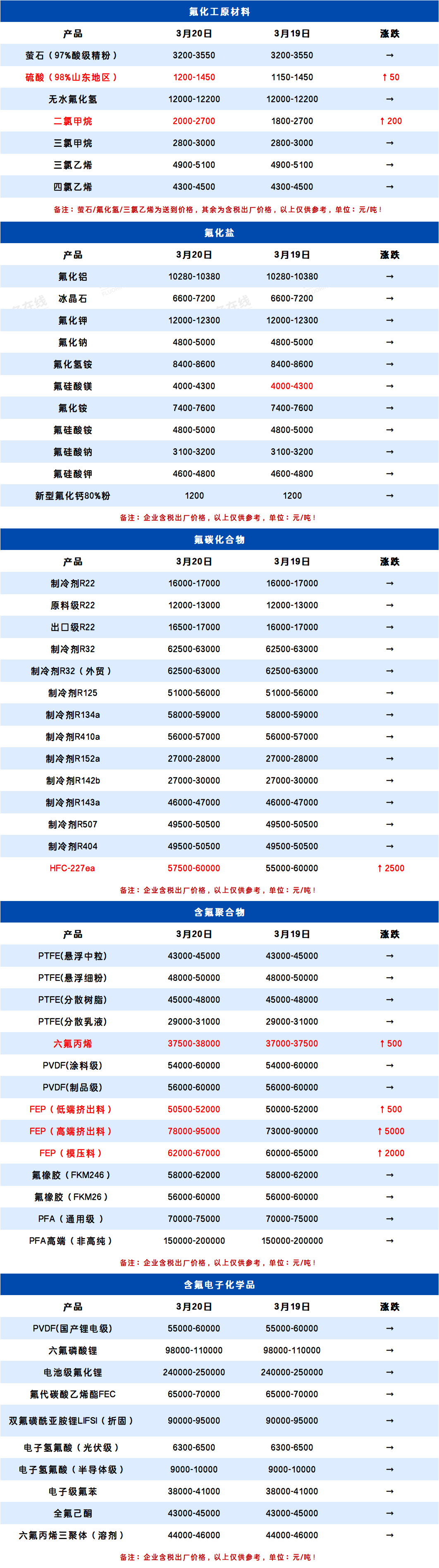 所属分类:全产业链价格表 阅读次数:255 发布时间:2026-03-20 内容来源:氟务在线