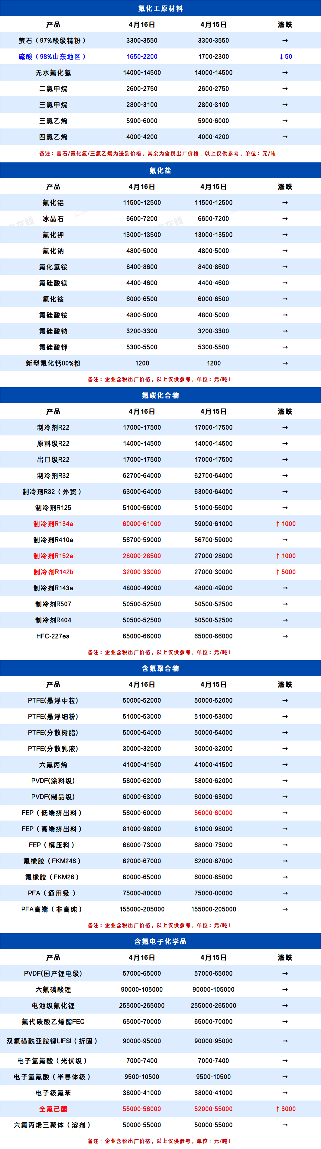 所属分类:全产业链价格表 阅读次数:139 发布时间:2026-04-16 内容来源:氟务在线