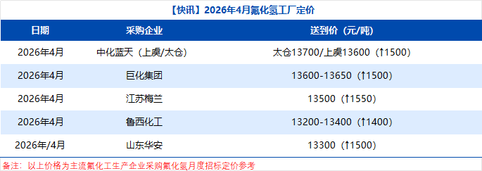 【快讯】2026年4月氟化氢采购定价