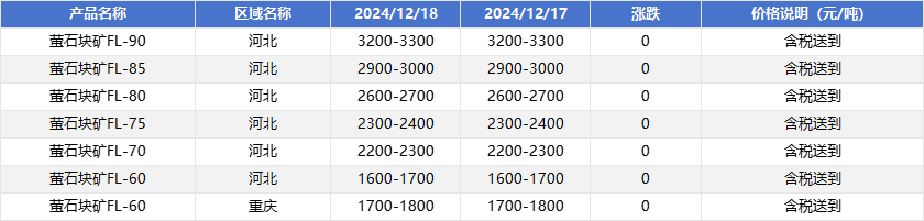 2024年12月18日国内萤石块价格一览表