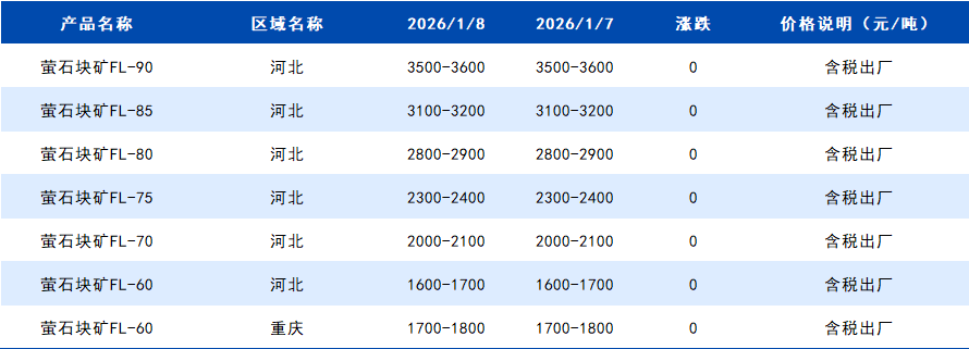 2026年1月8日国内萤石块价格一览表