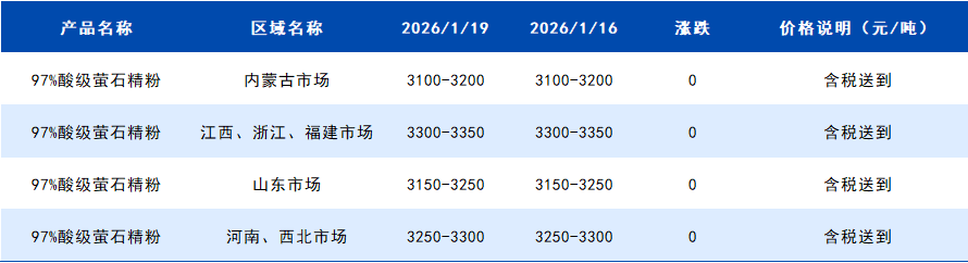 2026年1月19日国内萤石粉价格一览表