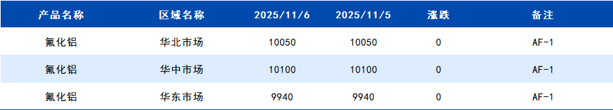 2025年11月6日国内氟化铝价格一览表