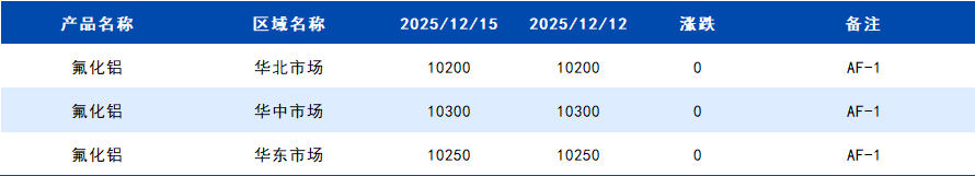 2025年12月15日国内氟化铝价格一览表
