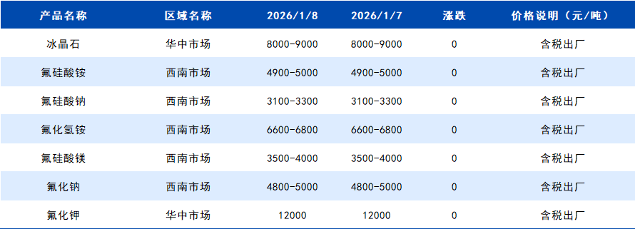 所属分类:市场汇总 阅读次数:97 发布时间:2026-01-08 内容来源:氟务在线
