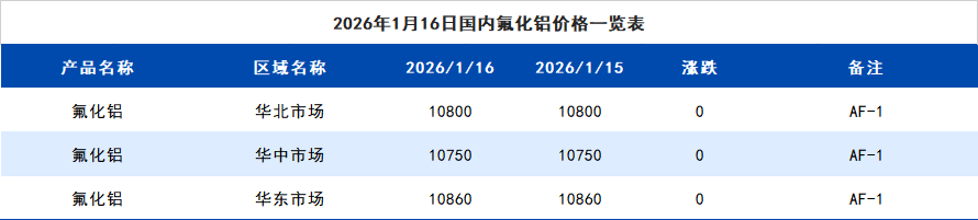 2026年1月16日国内氟化铝价格一览表