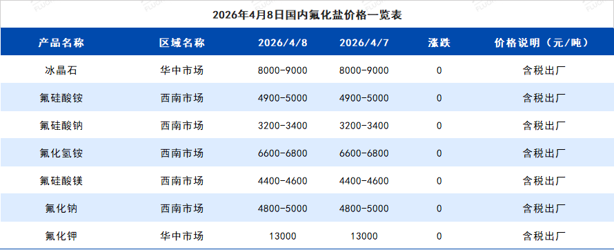 所属分类:市场汇总 阅读次数:55 发布时间:2026-04-08 内容来源:氟务在线