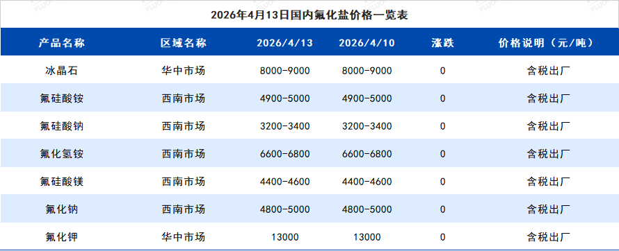 所属分类:市场汇总 阅读次数:41 发布时间:2026-04-13 内容来源:氟务在线