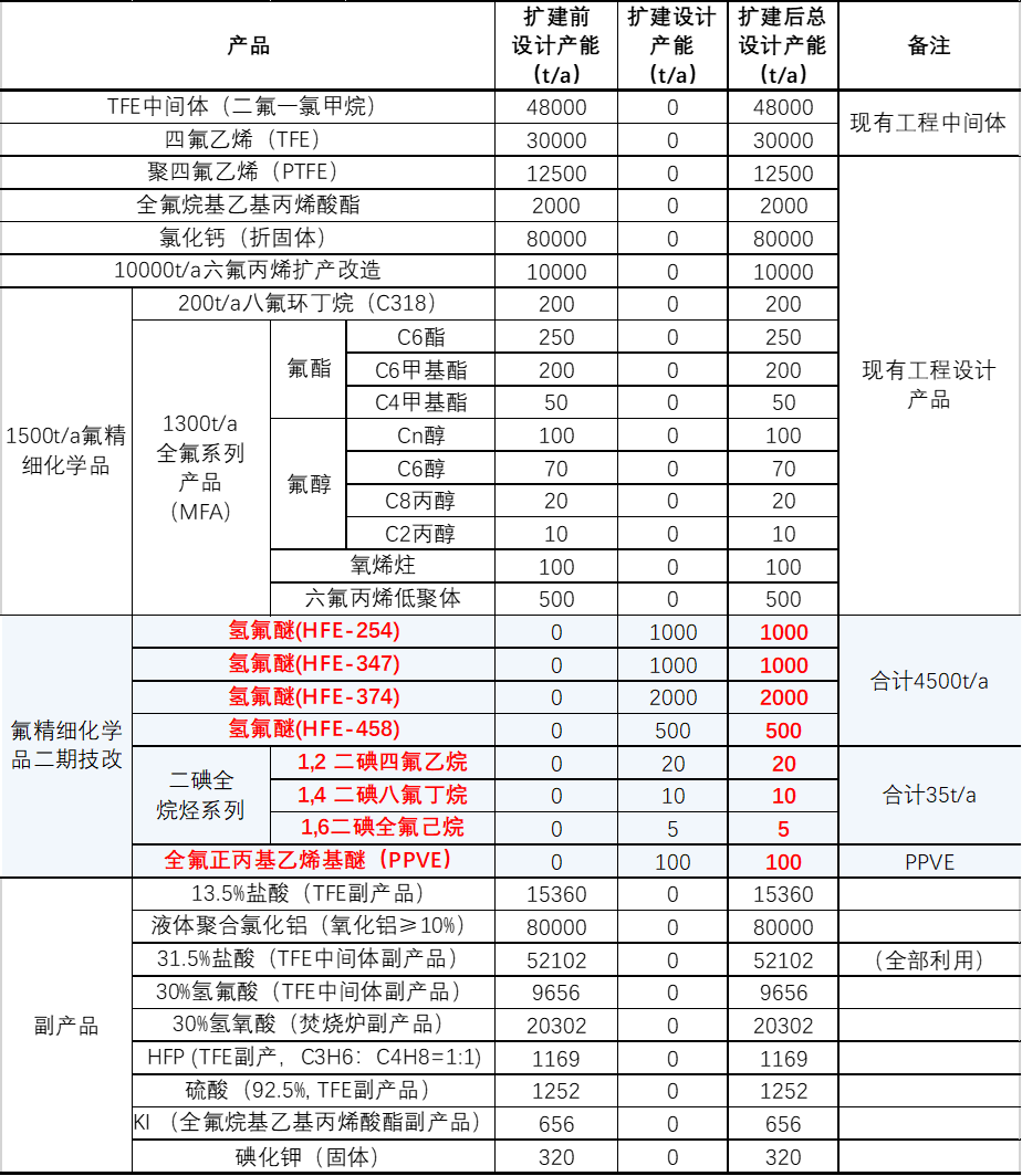 其中二阶段(未建):全氟正丙基乙烯基醚(PPVE)100t/a、二碘四氟乙烷20t/a、二碘八氟丁烷10t/a、二碘全氟已烷5t/a。