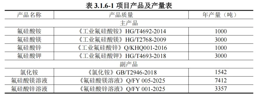 建设内容:项目建设多功能可溶性氟盐装置(氟硅酸铵、镁、锌、钾综合生产装置)及配套公辅设施(消防、应急等),形成年产8000吨氟硅酸盐生产能力。