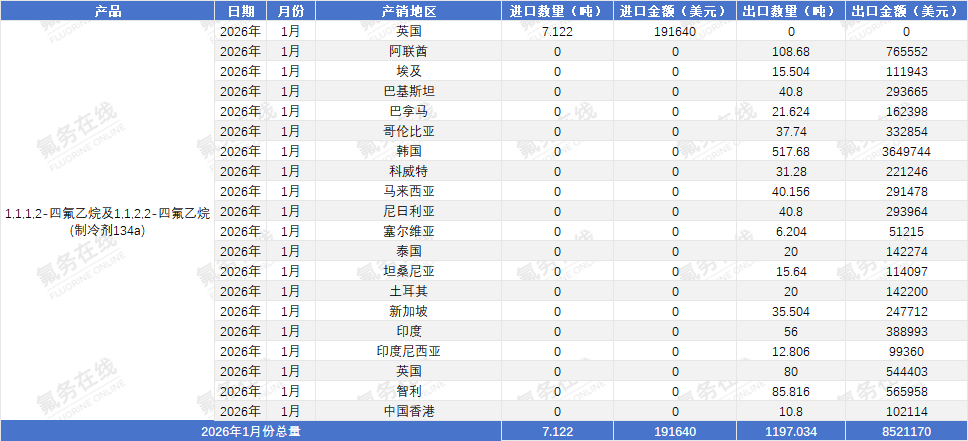 - 年度汇总!2025年氟化工产品进出口数据最新出炉 2026-01-21